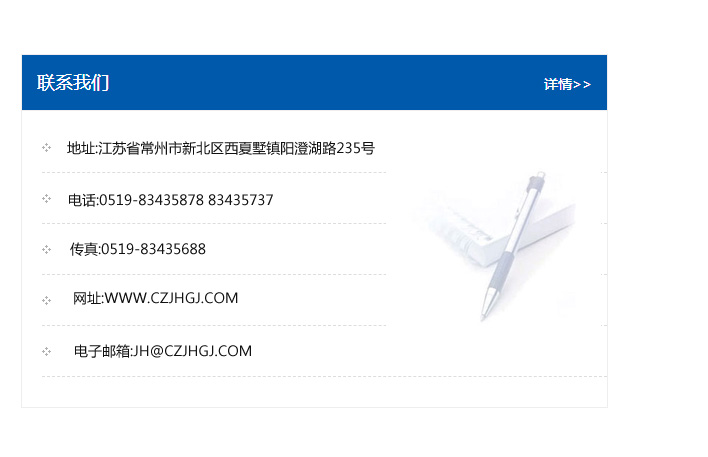 傳真:0519-83435688    郵編:213135    網址:WWW.czjhgj_com.hj-invest.com    電子郵箱:JH@czjhgj_com.hj-invest.com